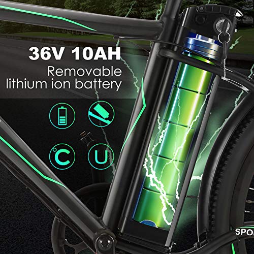 Outstanding performance: 26-inch wheels and 1.95-inch tires provide a smooth cycling experience. The 10 AH lithium-ion battery is sufficient for daily commuting or short trips, such as weekend camping and fishing, and it is removable!