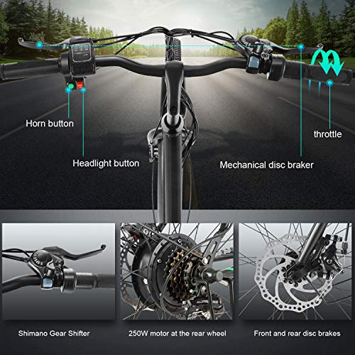 Efficient Braking-shifting: the bike is equipped with dual mechanical disc brakes and 6 gear shifter, which features it further range variation and climbing ability, and you would achieve fast braking once you press the brake.