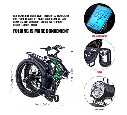 26 x 4.0inch FAT TIRES EBIKE: Tackle the tough the sand, snow or road with ease. And the Frame is made of durable 6061 ALUMINUM Alloy, full suspension fork, offers smooth cushioning and shock absorption when cycling on rough terrains, enjoying the stimulate during your ride.