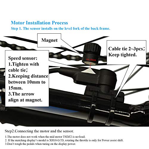 After installing Note: The motor does not work when the mid motor TSDZ2 is no-load; If the matching display’s model is XH18-LCD, rotating the throttle is only for Power assist shift. Do not tough the pedals when turing on the display power.