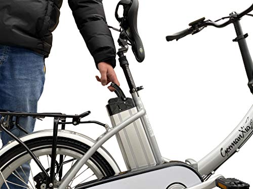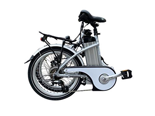Up to 80 km range and 250 W rear wheel drive, 36 V/10 Ah Li-ion battery.